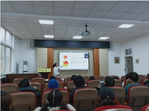 与南京航空航天大学连线结束后,胡洁同学带领哲学1901、飞设1901团支部的同学们进行了以“我与华中大“为主题的微型团课活动。微团课设计了两个互动环节,主持人向大家展示华中大校园的图片及相关地标对应的emoji表情,同学们根据提示猜测对应地点的名称。现场气氛活跃,大家纷纷参与到猜图大军中,欢笑不断。团支部旨在通过这种微型团课模式,鼓励大家走进华中大的每个地方、每个角落,好好珍惜和享受自己的大学时光。