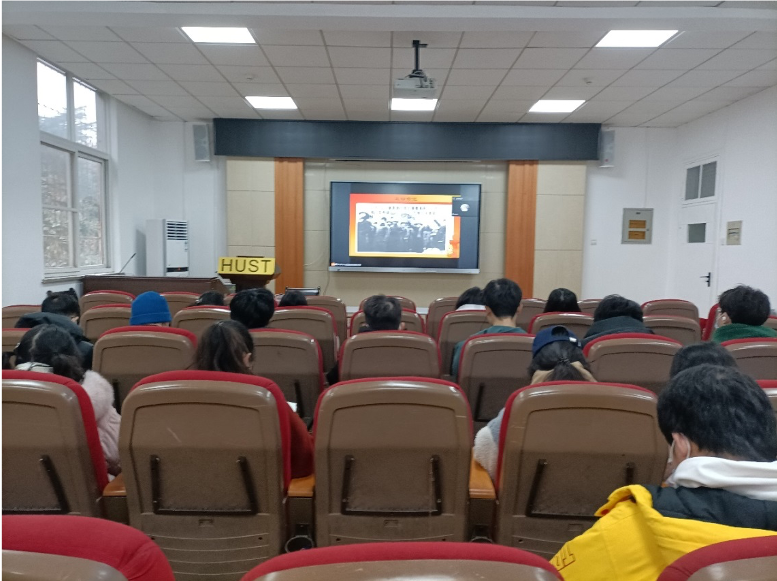 接下来,祝梦媛同学讲解了团徽的历史和变化,重点对党史、新中国史、改革开放史、社会主义发展史中的部分内容进行了解读,帮助大家更好地触摸中国共产党为人民谋幸福、为民族谋复兴、为世界谋大同的伟大理想。最后,大家一起观看了抗美援朝作战70周年的纪念视频《烈火战马》。