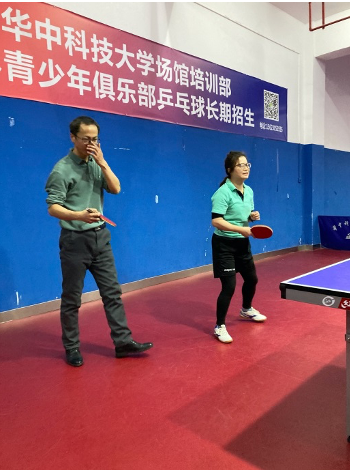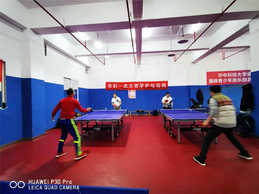 在工作研讨后,双方开展了乒乓球友谊赛,在我校光谷体育馆开展了首届“华科-武大乒坛论剑”活动。各位教师进行了短暂的热身练习,彼此熟悉球路,随后便开始捉对厮杀。