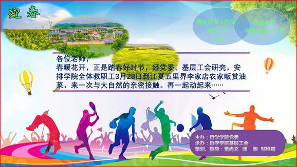 2021年3月28日,院工会精心筹划,搭建平台,组织教职工开展了春日踏青活动,旨在营造良好氛围,放松身心,增进教师间情感交流。