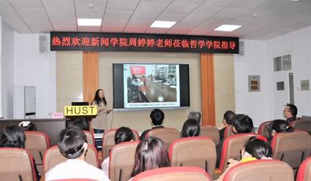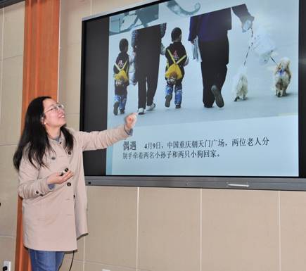 她以我院师生新闻习作中的照片为例,分析了照片的优点和可改进之处,指出可以通过后期的修图(裁剪照片、调试色彩等)使照片最佳化。周老师还建议选择现场感强、具有故事讲述力的照片作为新闻稿件的配图。