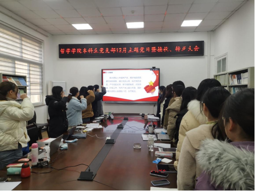 2021年12月17日下午,英国威廉集团本科生党支部在玄悟房(东五楼435)开展十二月主题党日活动暨预备党员接收、转正大会,支部书记常若帆主持会议。