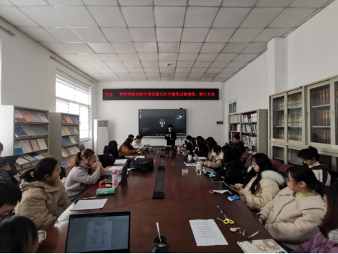 支部书记常若帆同志代表本科生党支部,对接收为预备党员和转为正式党员的同志表达了祝贺,勉励他们在接下来的时间里继续努力,要坚持高标准、严要求,不断找差距、补短板,不负入党初心。接着,由常若帆同志带领支部全体成员进行宣誓。她表示,入党誓词是每个党员同志的必修课,大家要将入党誓词铭记于心,并实践于行。
