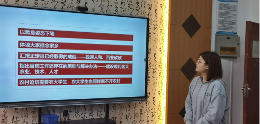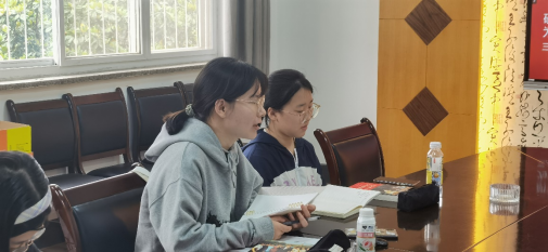 会议第一项,党建中心实践部负责人宋秀平领学《习近平与大学生朋友们》的第一篇访谈录并进行分享。宋秀平同学从起因、经过、结果三个方面对时任正定县委书记习近平同志邀请当年大学生返家乡做调研做了详细的讲解说明,以“为人需真诚,谋事当务实”这一句话概括了第一篇访谈录,并融入自身思考,指出大学生要扎根基层,将个人发展和社会需要紧密结合。