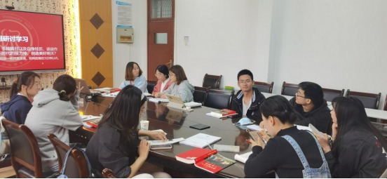 会议第三项,分组研讨学习。听完两位同学的分享之后,现场同学分为四个小组,以“结合讲话、书籍篇目以及自身经历,谈谈作为中国青年如何接好新时代的接力棒,创造美好明天”为题进行分组讨论。