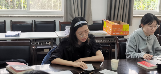 第二个小组代表、党建中心实践部成员陈丹仪进行发言。她认为,在风雨如晦的革命年代,正在觉醒的新青年成为党的预备力量、后备军。关于青年问题,她认为我们应该积极建立同青年的联系,深入到青年中去,在青年人群中发挥导向作用;并且多进行调研活动,去红色基地体验当年的历史经验与传承。