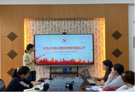 第二个小组代表、党建中心宣传部部长吴文卓进行发言。她首先跟大家分享了基层的具体概念,接着就学生如何转化为基层干部的问题,她结合组内成员经历表示,我们应当培养忍耐力、直觉力和行政力,面对基层工作的困难迎难而上。