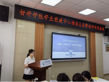宣传部负责人吴文卓从党建中心的角色及作用、工作完成情况及总结、工作中的亮点和不足之处、工作体会及今后展望等方面进行汇报。作为宣传部的一员,高质量地完成了学院党建相关的活动摄影及新闻稿撰写工作;作为宣传部部长,积极发布并安排任务,完成审稿工作,并与校级宣传平台进行对接。今后,她将不断提高自身的工作能力和素质,全方位完善自己,积极为老师和同学们服务。