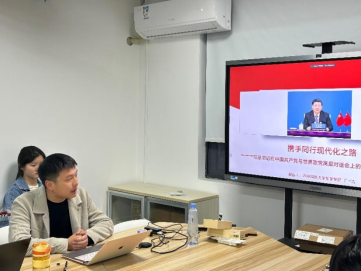 会议第二项,由丁一达同学讲授微党课《携手同行现代化之路——习近平总书记在中国共产党与世界政党高层对话会上的主旨讲话精神专题学习》。他以人类命运共同体的构建为切入点,分享了中国共产党与世界政党高层对话会的主要内容。他分享到,当前时代背景严峻复杂,人类社会现代化进程又一次来到历史的十字路口,而中国共产党有着自己独有的经验:坚守人民至上理念、秉持独立自主原则、树立守正创新意识、弘扬立己达人精神、保持奋发有为姿态。