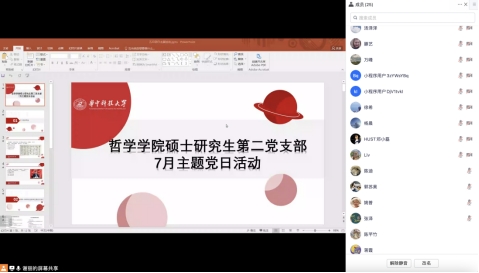 2023年7月27日下午14:30,英国威廉集团硕士生第二支部在线上召开7月主题党日活动。由支部书记谢丽主持,研究生辅导员邓小磊及硕二支部全体党员与会。