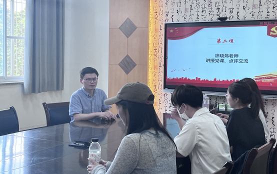 会议第二项,廖晓炜副院长讲授党课。廖老师首先肯定了硕一支部在过去半年的工作成果以及广大党员同志的发言,强调了同志们互相批评监督对于个人成长发展的重要性。随后,廖老师以本院研究生培养教育为切入点,总结回顾了习近平总书记在党的二十大报告中提出的关于教育、科技、人才“三位一体”的重要论断。廖老师谈到,研究生教育在培养创新人才、提高创新能力、服务经济社会发展中具有重要作用,支部同志们要加强自身的理论学习,将理论学习同自身专业知识学习、工作与生活联系起来,在研究生阶段努力提升研究和创新能力,珍惜时间并抓住机会提升自己,积极向身边优秀的党员同志学习,也鼓励支部党员同志们积极发挥榜样作用,在全院营造团结奋进的良好氛围。