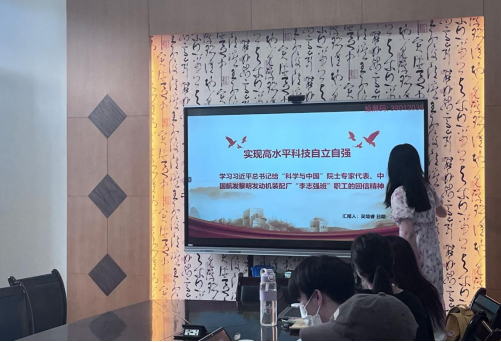 会议第一项,由吴煊睿同志讲授微党课《实现高水平科技自立自强——学习习近平总书记给“科学与中国”院士专家代表、中国航发黎明发动机装配厂“李志强班”职工的回信精神》。吴煊睿同志细致地讲解了“科学与中国”院士巡讲活动、“李志强班”以及习近平总书记给院士专家代表和“李志强班”职工的回信内容,阐述了我国科技事业不断发展的良好局面并在此基础上要加快实现高水平科技自立自强的目标要求。