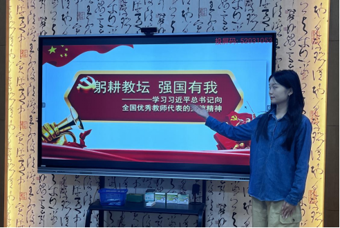 会议第一项,杨涵琳同志作主题为《躬耕教坛,强国有我——学习习近平总书记向全国优秀教师代表的致信精神》的微党课。她带领同志们认真学习习近平总书记的致信内容,深刻感悟党中央对教师的重视、关怀和殷切期盼,进一步引导新时代青年学子自觉加强教育与能力培养,努力成为堪当民族复兴大任的时代新人,为强国教育建设贡献青春力量。