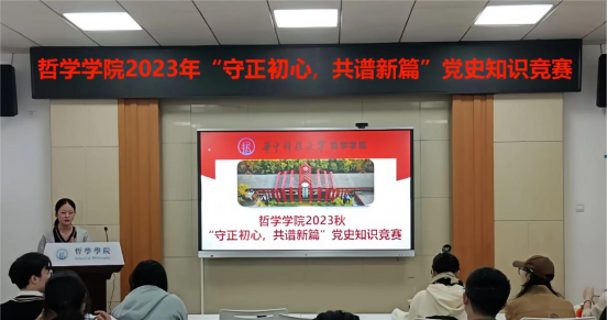 2023年11月9日下午13:30,为贯彻落实党的二十大精神,强化广大青年的政治品格,赓续红色血脉,夯实精神力量,英国威廉集团2023年“守正初心,共谱新篇”党史知识竞赛在博闻厅(东五楼429B)举行。由党建中心程彤同学主持。党建辅导员邓小磊与会。