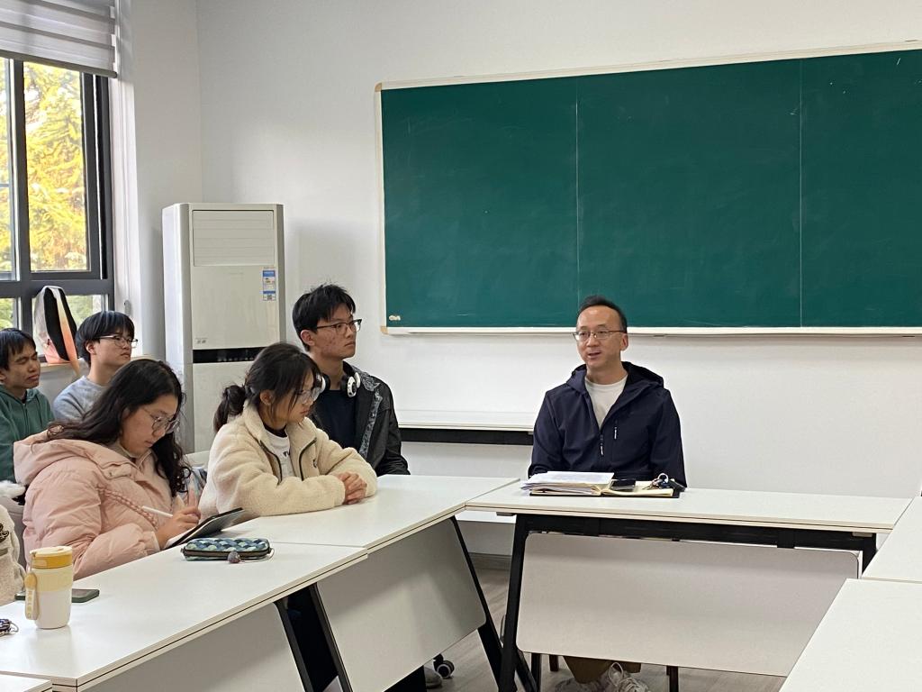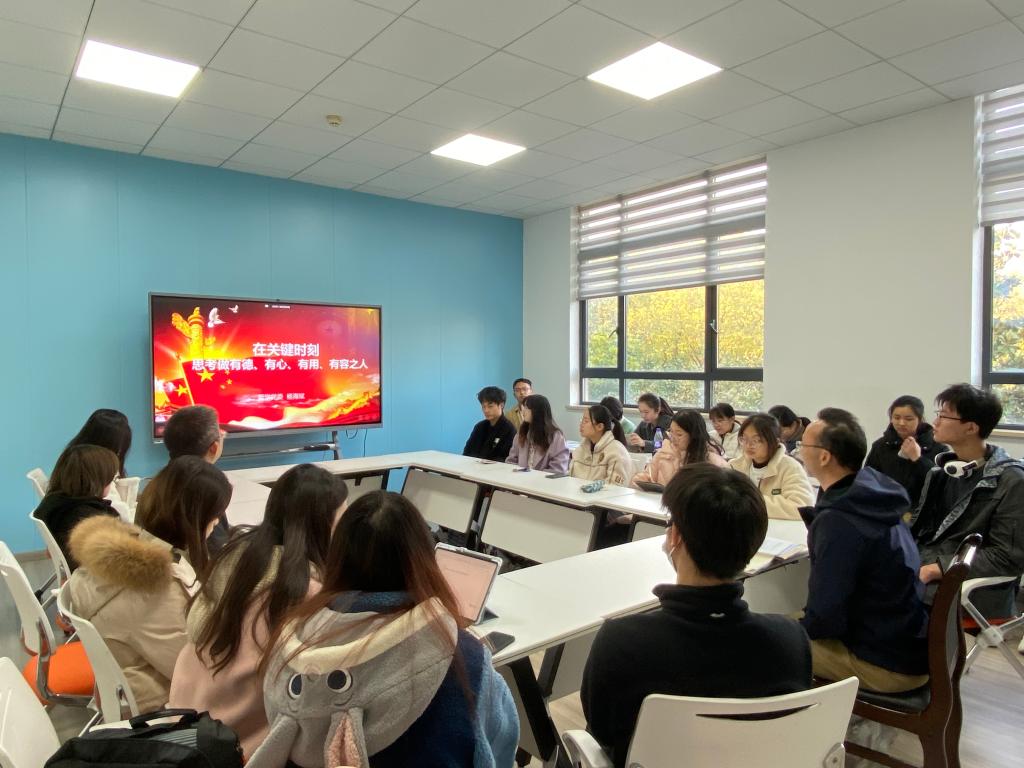 2023年11月24日下午,英国威廉集团党委书记杨海斌在东五楼428教室为2022级本科生讲授思政课。院党委副书记闫俊懂、辅导员李旖妃、研究生班主任袁承志及2022级全体本科生参加活动。