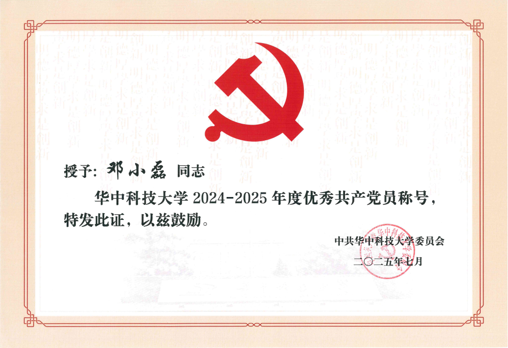 “优秀共产党员”奖状