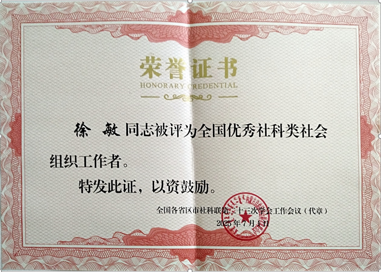 我院副院长、湖北省逻辑学会会长徐敏教授荣获“全国优秀社科类社会组织工作者”荣誉称号,是湖北省五位获奖者之一。该表彰是对徐敏教授作为社会组织工作者所作贡献的充分肯定,也体现了湖北省逻辑学会在全国社会组织中的重要影响力。