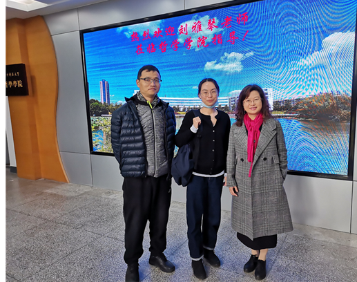 图:刘雅琴老师(中)与党、政办公室主任合影留念