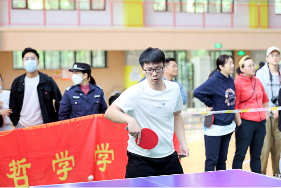 2022年4月16日上午,华中大第六届“知心导师杯”研究生师生乒乓球赛在西区体育馆举行,“袖珍学院”哲学师生成功组队完赛。“我们想搞好工会,希望搞好以体育人,工作就要向全体师生延伸,学校提供的交流平台和渠道不能缺席”,院工会主席闻骏和副书记闫俊懂交流到。一得知“知心导师杯”师生混合组队比赛的消息,学院工会和学生口就利用业余时间联合组织了选拔赛,为组队打下基础。