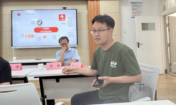 最后,九派新闻总编刘灏、采访部负责人耿红仁、运营部负责人阳丹与师生进行了交流,介绍了岗位需求,热烈欢迎我院的同学们前往实习和工作。