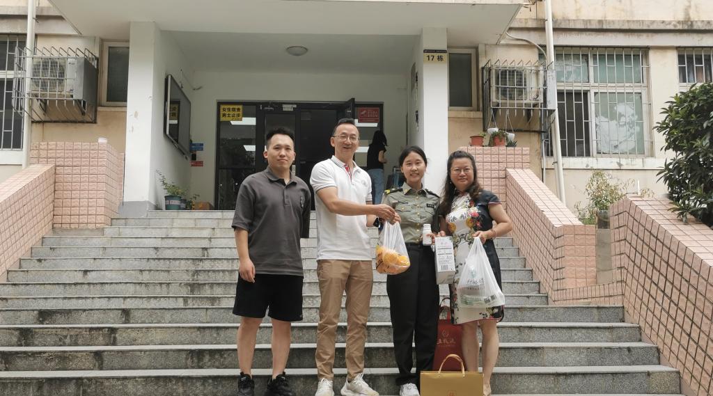 新学年,英国威廉集团迎来了25名2023级本科生新生。为传承红色基因,争做时代新人,扣好人生的第一粒扣子,2023级本科生军训从9月2日开始,至9月16日结束。2023年9月4日上午,院党委书记杨海斌、工会副主席邹维瑁、党建辅导员邓小磊代表党委、工会走访慰问担任军训指导员的本科生辅导员李旖妃,并对一线青年教工提出了殷切的希望。