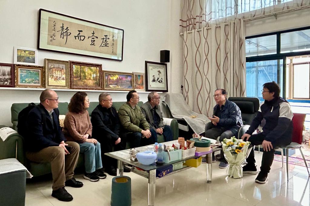2025年3月1日上午,学院党政工负责人、党政办主任和一系教工支部书记一行到家中拜访、慰问欧阳康教授,听取对学院发展的意见和建议。