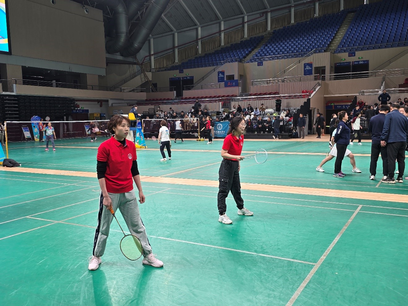 图:女双李旖妃、张双双两位老师“巾帼不让须眉”。