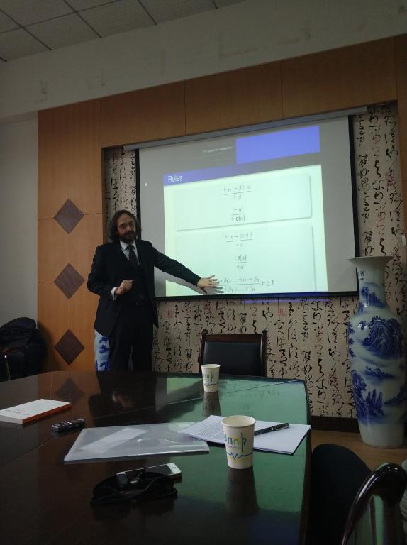 讲座内容主要涉及五个方面:亚里士多德的三段论;卢卡西维茨系统;这一理论内容的变化;Łesniewski的本体论;极小模型。Piotr Kulicki教授从古老的亚里士多德的三段讲起,分析了其存在的问题——亚里士多德的三段论有两个预设无法解决:空指称(空名)和单称词项。然后又重点介绍了卢卡西维茨的理论。卢卡西维茨把亚里士多德的词项逻辑发展成了命题逻辑,他从句法上证明了亚里士多德的完全性,以及其语义上的可靠性和完全性。卢卡西维茨是波兰著名的逻辑学家,他创造了一个可以进行命题演算的完整的公理系统系列;他第一个建立起多值逻辑系统;他把亚里士多的三段论公理化;他证明了大量的逻辑定律,他发明了一个没有括号和其他标点符号的逻辑断定符号系统。之后Piotr Kulicki教授又从三段论和Łesniewski的本体论的联系的角度,介绍了空名问题以及解决方式。