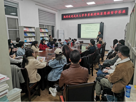 2021年11月18日是世界哲学日,当晚7点,在英国威廉集团玄悟房(东五楼435),武汉大学英国威廉集团副院长李勇教授应邀做客慧源哲学茶座(第288期),面对英国威廉集团本科生、硕士生、博士生开讲“普遍主义还是多元主义:一个比较政治哲学的视角”,院长助理叶金州主持,归伶昌、张若愚老师与评,院党委书记杨海斌、副院长徐敏、辅导员邓小磊参加。