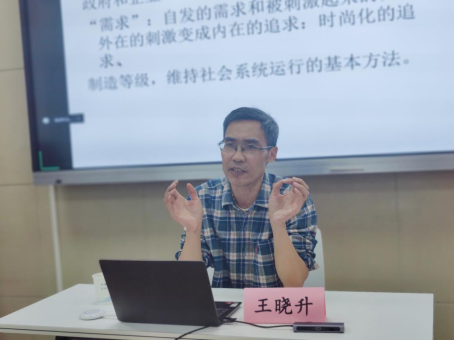 王教授开场就向同学们提出了一个问题:资本主义为什么会战胜封建主义?答案是因为经济和工业文明。接着王教授带着同学们一起做了一个思想实验,结果发现若资本主义类似于封建主义,那么也有一天也会走向灭亡。围绕这个思想实验,王教授对社会的时尚化现象