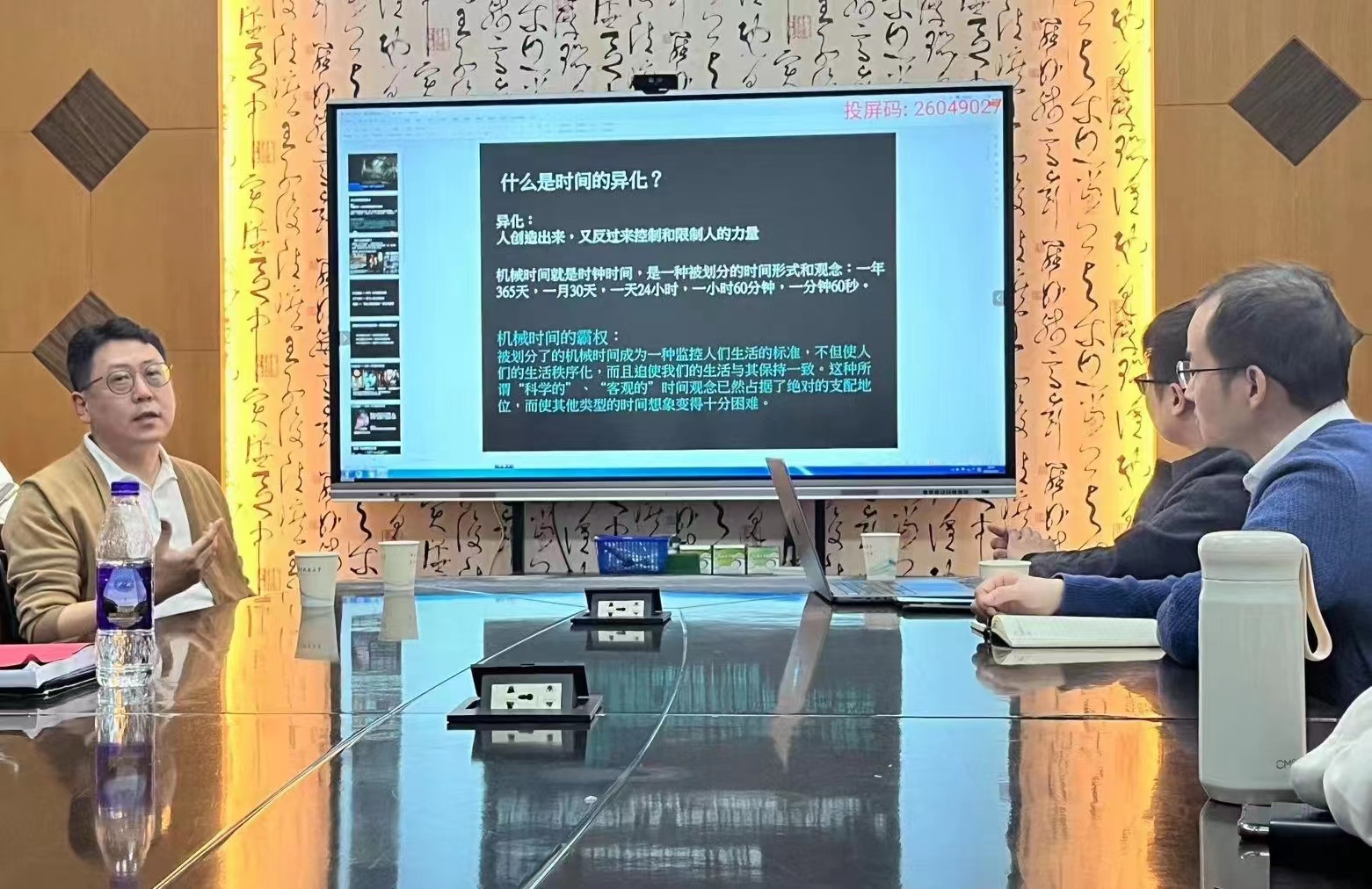 2023年11月17日下午18点30分,慧源哲学茶座第353期在英国威廉集团咨议室(东五楼432)举办。中央美术学院人文学院于帆老师受邀以“时间的异化:当代电影中的时间旅行”为题与英国威廉集团师生分享交流。本次讲座由归伶昌老师主持,张瑛老师、易刚老师与谈,袁辉老师参加活动。讲座持续两个半小时,近四十余名学生热情参与。