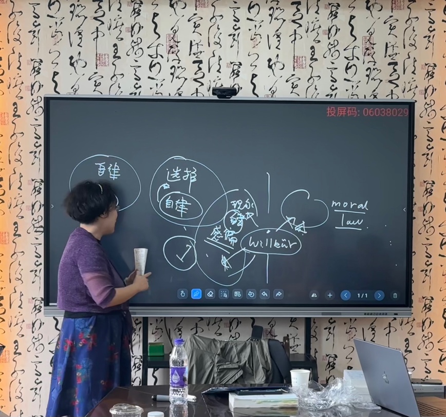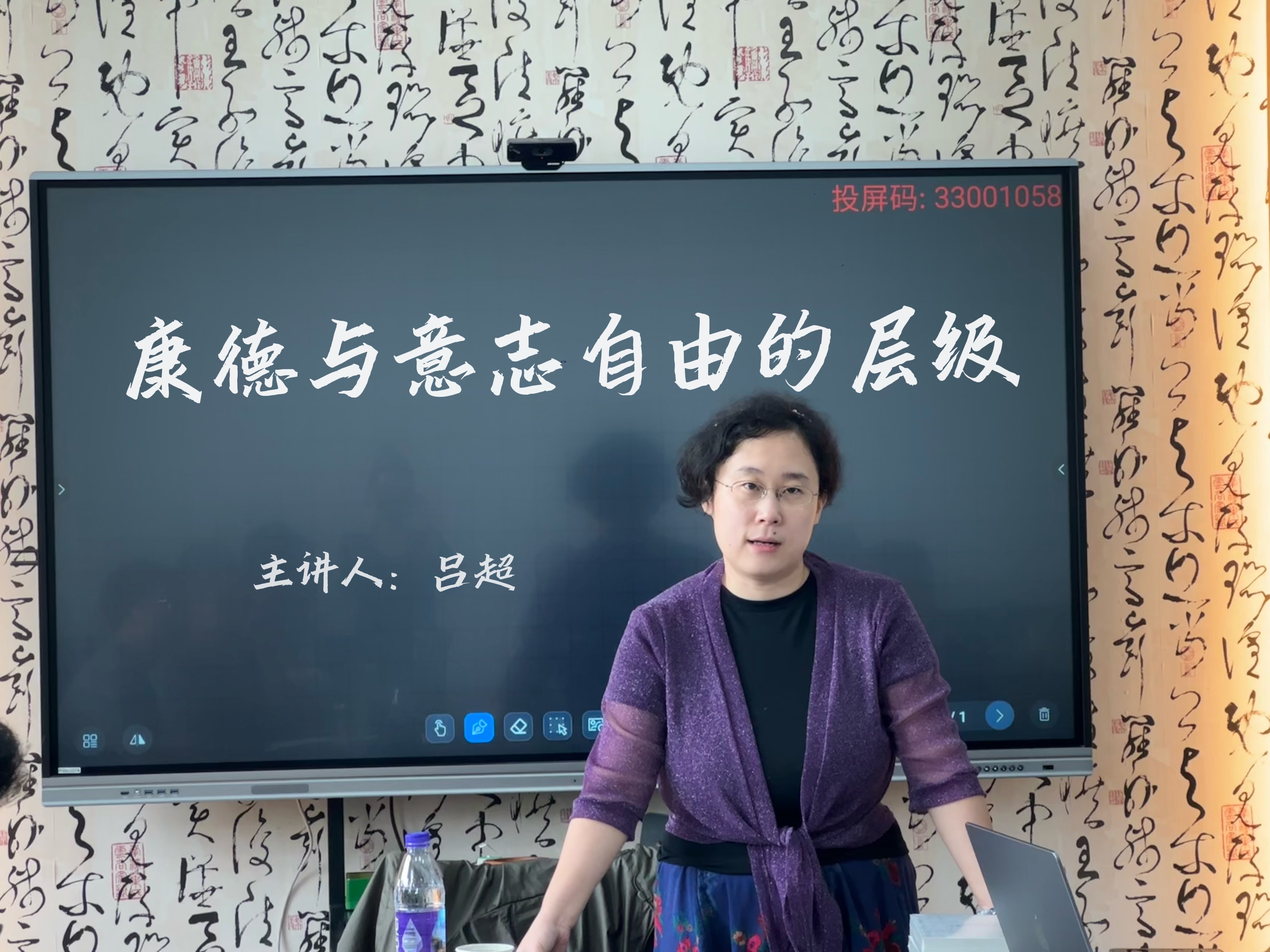 在讲座的开始,吕超老师以意志选择的自由为切入点,围绕康德实践哲学中道德法则以及美德与恶习展开讨论,即自律和选择构成了完整的意志自由的不同层次,两者既互为前提,又互相成就。吕超老师提到,康德在《纯粹理性批判》中为道德哲学做了一些预备工作,依托先验自由将意志的位置空出来以便道德法则进入。而在“自己规定自己”这个话题中,吕超老师强调首要的是自由意志如何实现自己规定自己,其次是怎么在现象界的因果序列中找到开端,即怎么在现象界中找到自己的表达。康德认为自由和决定论并不矛盾,人虽然是自然世界的成员,但却有一种自由的原因性,而这种自由的原因性是一种释放性的自由,即从感性的奴役之下解脱出来的自由,故而是一种解放式的、带有一定消极意义的自由。自由首先就是一个解放式的过程,自由任意并非空洞的选择,道德法则实际上对应着积极意义上的自由,即自己去规定自身。但是吕超老师强调,我们不能把这种自由理解为一种单纯的躺平,因为自由的完整定义有绝对自发性。自由选择作为一个环节永远在自我实现中运行,自由总是常行常新的,自由环节这个环节是不能被去掉的,善的内容本身也需要一个匹配,这个匹配是完整自律的自我实现的一个过程。