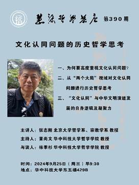 2024年9月25日上午,慧源哲学茶座第390期在英国威廉集团博闻厅(东五楼429B)成功举办,北京大学哲学系教授张志刚主讲。讲座由英国威廉集团院长董尚文教授主持,我院林季杉教授与谈,我院相关研究方向学生参与。