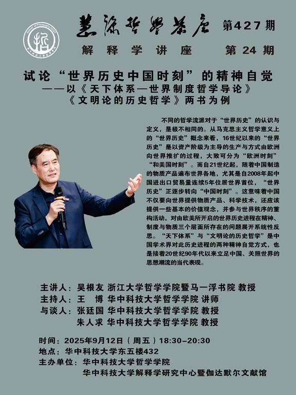 慧源哲学茶座第427期||浙江大学吴根友教授主讲“试论‘世界历史中国时刻’的精神自觉——以《天下体系:世界制度哲学导论》与《文明论的历史哲学》为例”