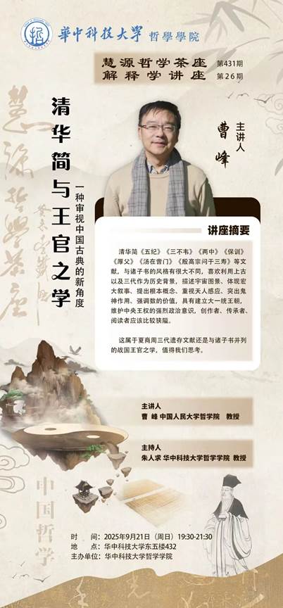 慧源哲学茶座第431期||曹峰教授主讲“清华简与王官之学——一种审视中国古典的新角度”