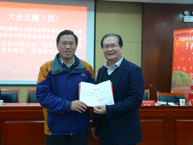 中国辩证唯物主义研究会常务副会长庞元正受研究会委托出席会议,传达研究会决定,指出,我国的社会认识论研究在欧阳康教授带领下,经过30多年的努力,已经在跨学科学术研究、实践对策应用、国际学术交流和高层次人才培养等方面取得丰硕成果,形成了颇具规模、充满活力的学术创新团队,产生了重要影响,为成立该专业委员会奠定了坚实基础。研究会经过认真研究,决定由欧阳康教授牵头组建社会认识论专业委员会,希望能够在新时代拓展和深化社会认识论研究,更好发挥哲学在中华民族伟大复兴中的积极作用。新任会长欧阳康代表首届理事会做了发言,他认为,中国辩证唯物主义研究会决定成立社会认识论专业委员会,这既是对于社会认识论长期研究发展取得的丰硕成果的积极肯定,也是促进马克思主义认识论的当代发展的期盼,有助于更好发挥哲学认识论在中华民族伟大复兴、促进人类文明进步中的积极作用。他感谢各方面多年的关心和支持,感谢学术团队的共同努力,感谢相关院系和专家学者的积极参与和大力支持,表示将努力地运用社会认识论专业委员会这个重要的学术平台,在理论与实践的结合上关注当代世界和中国的重大理论与实践问题,继续拓展社会认识论乃至马克思主义哲学的研究,为人类更好地认识自我,为中华民族的伟大复兴提供思想、理论和方法论借鉴。