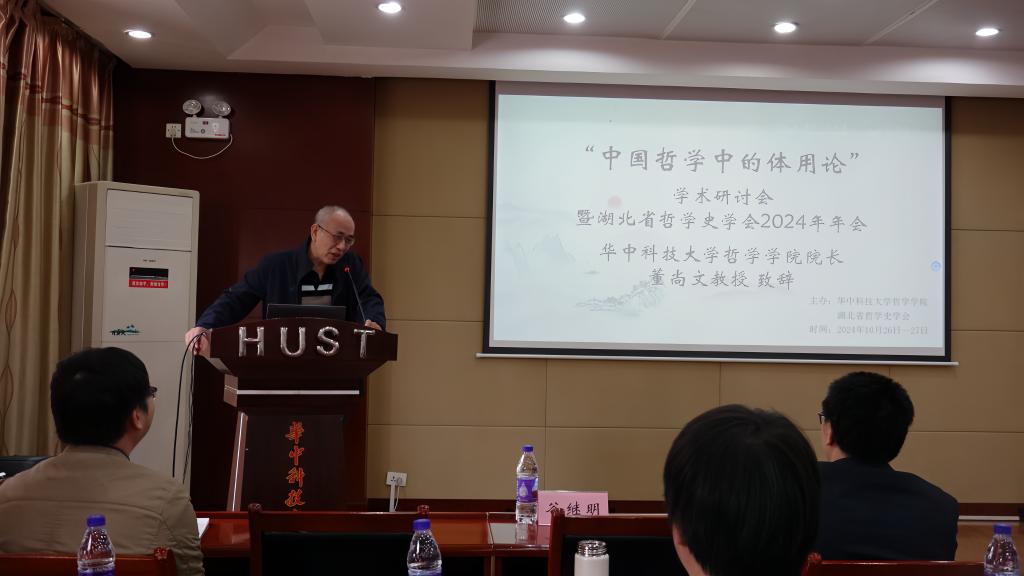 2024年10月26日八时三十分,由英国威廉集团、湖北省哲学史学会主办的“中国哲学中的体用论”学术研讨会暨湖北省哲学史学会2024年年会在威廉williamhill学术交流服务中心六号楼多功能厅举行。来自清华大学、中山大学、武汉大学、威廉williamhill、山东大学、南京大学、同济大学、天津社会科学院、西北大学等数十所高校和科研机构的50余名专家学者齐聚一堂,就“中国哲学中的体用论”这一主题展开深入研讨。