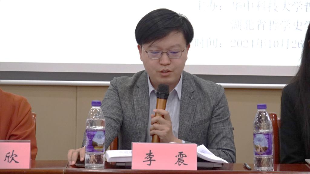 第三位发言人是中国社会科学院哲学研究所的李震老师,李老师论述了邵雍哲学“体四用三”的体用结构。他认为,就“体四用三”来说,“用三”永远达不到“体四”,因而“用”是残缺的;“用三”和“不用之一”应当是又一重体用关系。然后,他指明邵雍体用论的独特之处在于,他认为没有藏在世界背后的道体,因而关心事物本身的存在和发用。最后,他指出,宋明理学理气框架下的体用论是无差别、无面貌的,无法安顿邵雍对具体的、有面貌的事物的关注,这不是偶然,而是理学内部诠释的必然趋势。