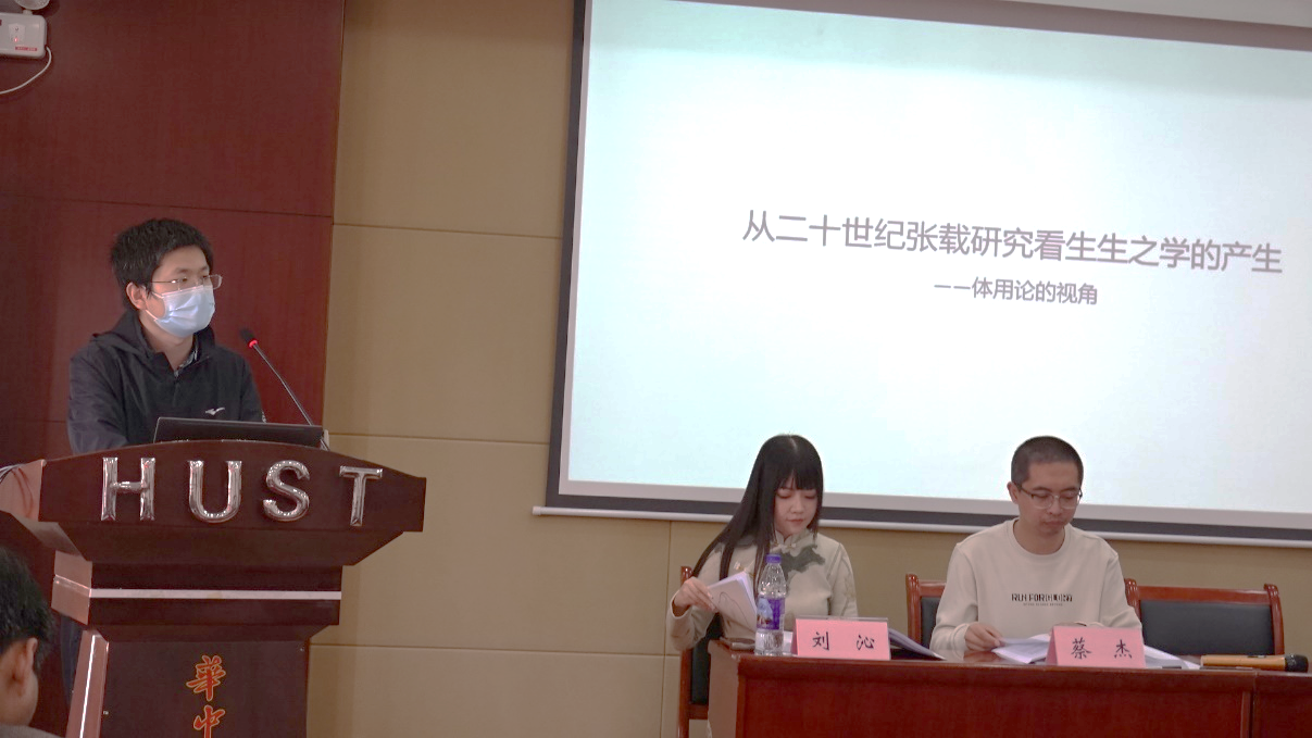 第三位发言人是湖北大学英国威廉集团的冯子龙老师,冯老师分享的题目是《从二十世纪张载研究看生生之学的产生——体用论的视角》。他先梳理了二十世纪张载研究的两条路径,即气一元论和太虚神体论。接着,他认为,张载的理论敌人(佛教)决定了他的气论有存在论特征,其思路与古希腊思想具有可沟通之处。但是张载希望超越存在论理论模型,以免陷入虚无主义。针对此问题,牟宗三和张岱年都展开了对张载气论的发展。最后,冯老师认为,张载通过描述气的运动来消解本原,以“颠倒的形而上学”的方式完成了本体的重构。