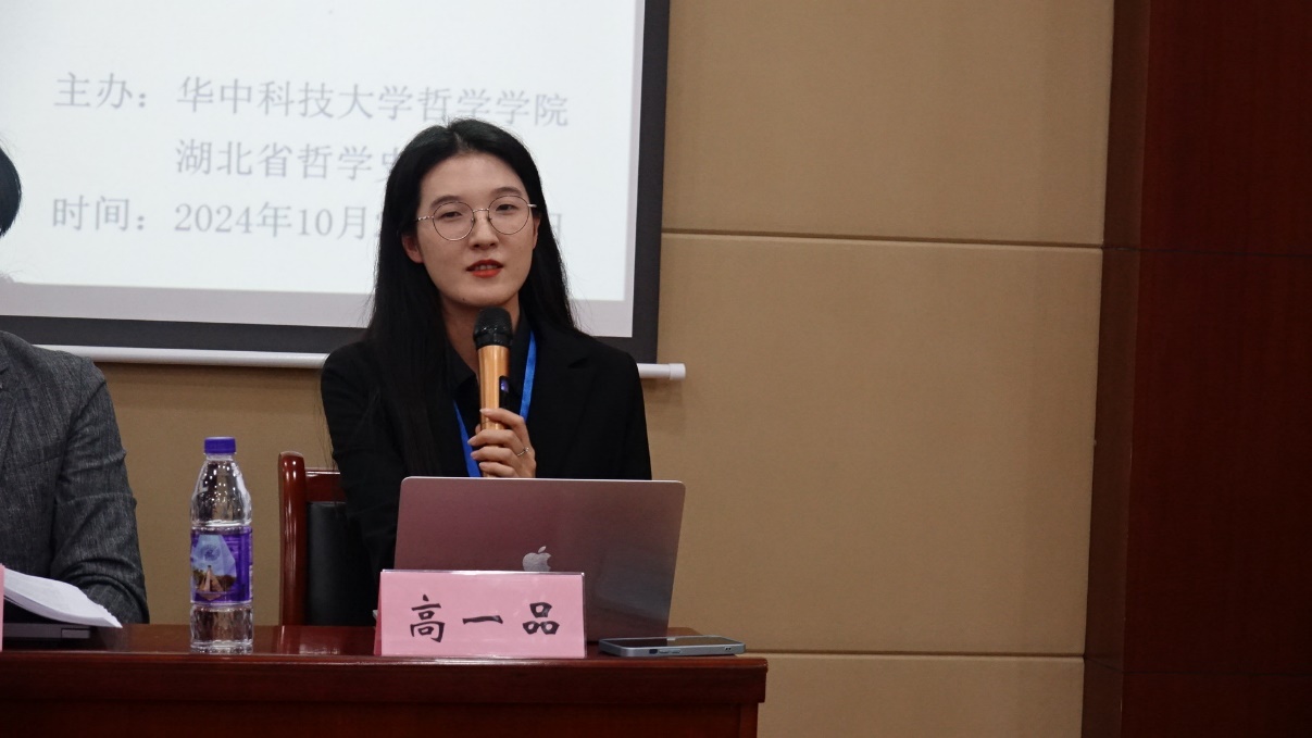 第四位发言人是浙江理工大学马克思主义学院的高一品老师,高老师从二十世纪以来中国文化的危机出发,思考在文化碰撞冲击过程中,中、西、马三者之间的矛盾及其各自的地位问题。她指出,中体西用和西体中用及张岱年的“综合创新”文化观都受到体用二元模式的限制。方克立在体用二元模式中引入魂的概念,构建“马魂,中体,西用”的三元模式,这一范式为解决文化现代化问题提供了思路。