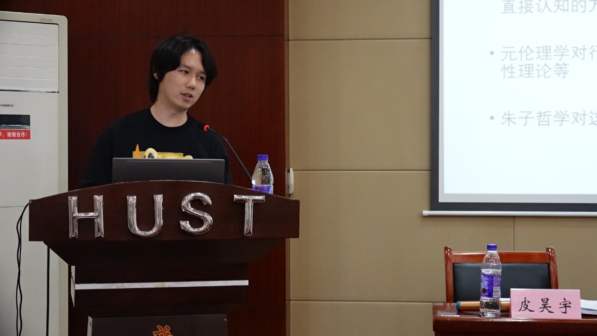 第一位发言人是中山大学哲学系的皮昊宇。他首先证明了当代元伦理学中道德属性与行动者反应的关系问题与朱子哲学中事理与情动关系的相似性。接着,他具体论述了观察者视角与行动者视角,以及行动者视角下的朱子对“事理”与“情动”的论述。最后,他认为事理与情动的互释机制有循环论证的嫌疑且道德视点是有限的。在发言最后,皮博士试图为这一可能的问题给出自己的解答。