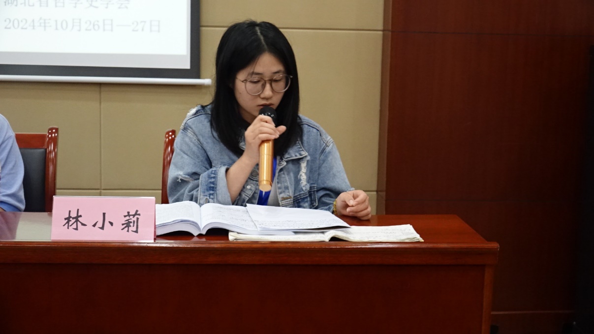 第五位发言人是中南大学人文学院哲学系的林小莉,她论述了熊十力的新体用论。首先她认为熊十力改造《成唯识论》而成的《新唯识论》构建了新的体用论,其创新就在于儒佛会通。接着,她指出,熊十力的本体论表现出与佛家特别是唯识宗的不同,其体用不二是对唯识宗的批判,熊十力通过把本心之本体与用连在一起,构成了新的本体论。