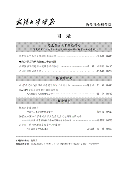 王晓升教授、马克思主义哲学专业博士研究生任豆撰写论文《从非同一的视角看社会历史中的“魔力”——阿多诺的分析及其启示》发表于《武汉大学学报(哲学社会科学版)》(CSSCI来源期刊)2023年第4期。