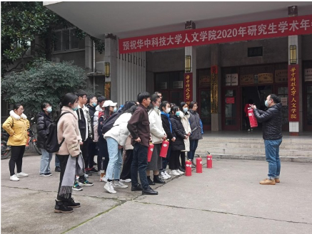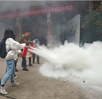 理论宣讲结束后,消防安全管理办公室的相关老师带领同学们在东五楼门口进行了消防器灭火实际演习。参与活动的每位同学都亲身体验了消防器灭火过程。