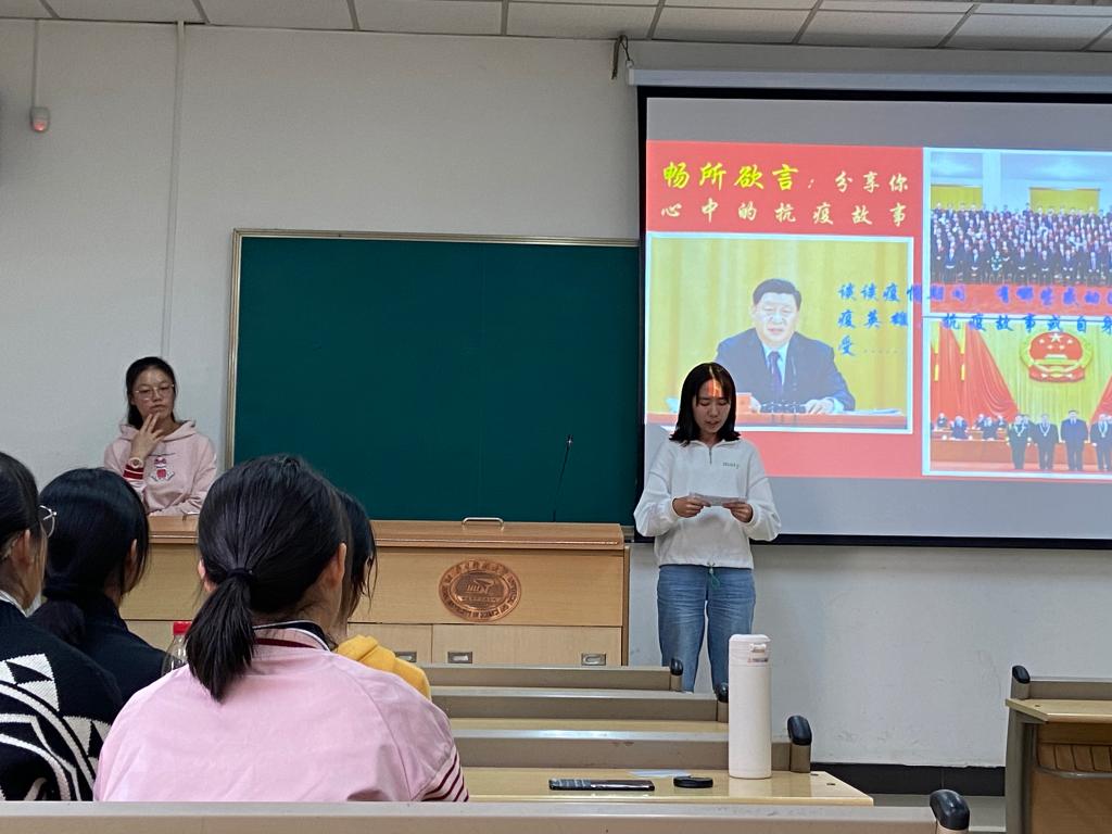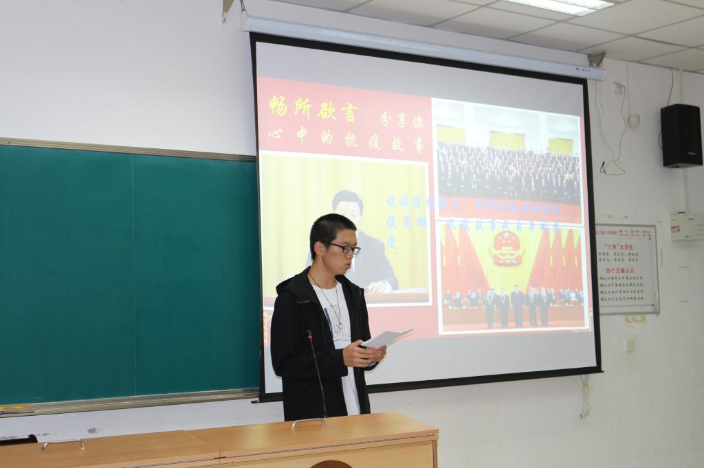 随后,同学们主动分享了自己在疫情期间对生命、责任与意义的感悟。向留洋同学经历一场感染虚惊,多了一份对生命的敬畏,各行各业奔波不歇所体现的众志成城,令她切实感受到家国命运相连。申宇骏同学从生活依赖网络世界的局限切入,聚焦那些线下坚守岗位的后勤工作者,是他们服务人民,为抗疫的高效便利提供了强大的支撑。最后,他们都向无私奉献的英雄人民致以由衷的感谢和崇高的敬意。