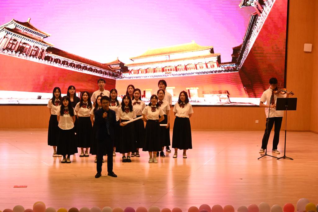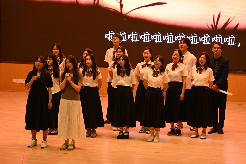 陈逸唐、简万超、聂梓尧、孔子豪等16名同学带来的歌曲串烧引发全场合唱。