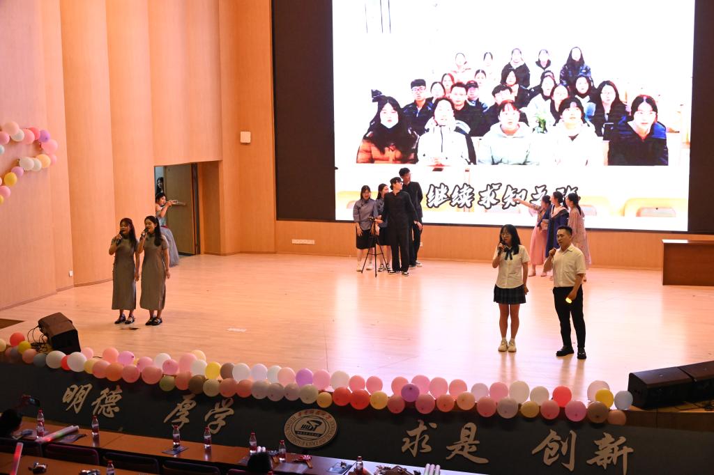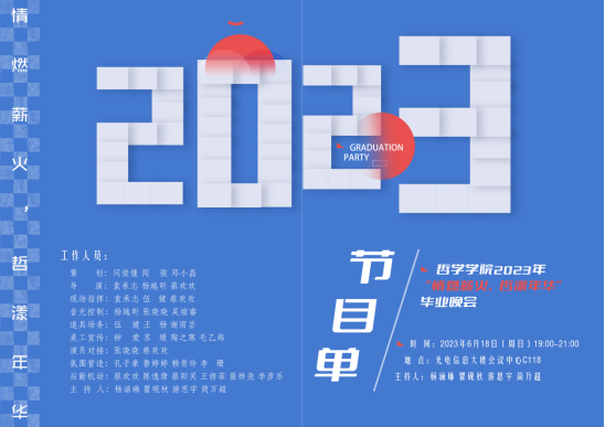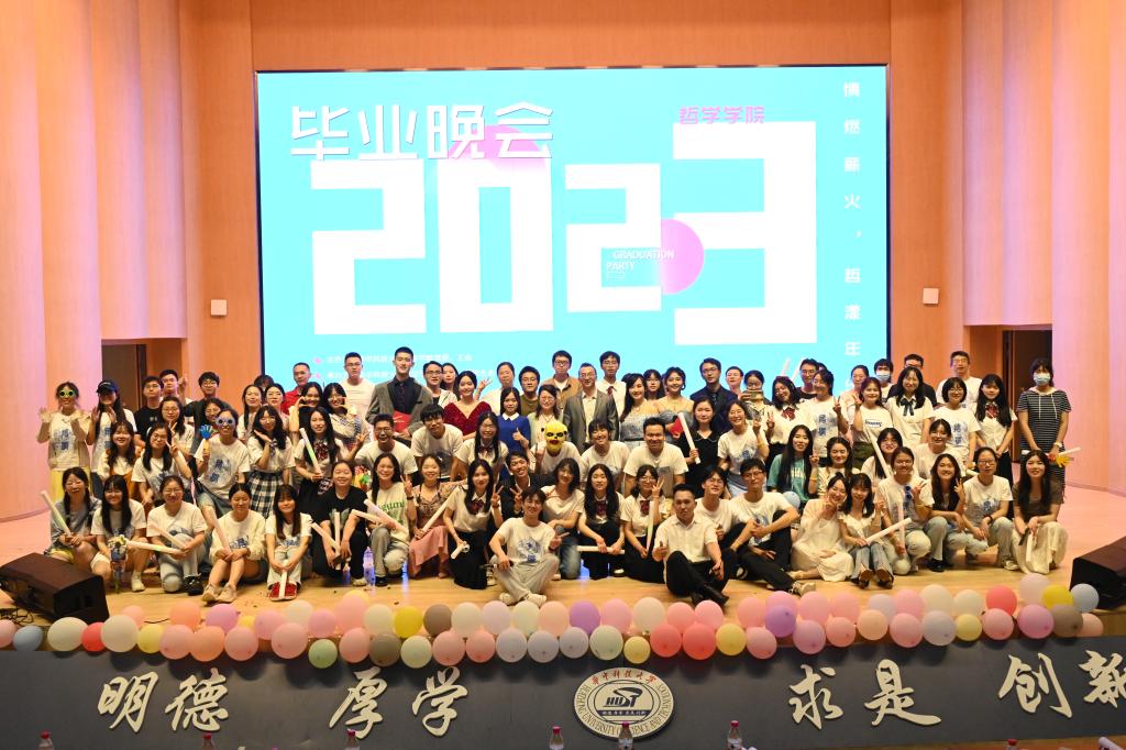 2023年6月18日晚19:00,英国威廉集团2023年“情燃薪火,哲漾年华”毕业晚会在光电大楼C118报告厅举行。师生联袂同台演出,由杨涵琳、瞿砚秋、游思宇、简万超主持本次晚会。院党委书记杨海斌、党委副书记闫俊懂、工会主席闻骏、一系主任赵泽林、师生代表以及2023届毕业生出席本次晚会。导师代表、教师班主任和各班级以VCR形式为毕业生送上祝福。
