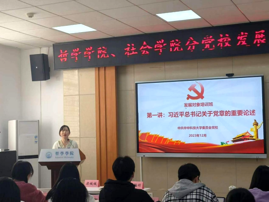 第一讲,由梁媛媛老师为发展对象讲授《学习领会习近平总书记关于党章的重要论述》的课程,她从正确认识中国共产党章程、中国共产党章程建设的历程以及认真学习党章、严格遵守党章几个方面,带领同学们学习中国共产党章程的性质、作用及建设历程,从而帮助同学们加深对中国共产党章程的理解,提升对中国共产党章程的认同,在学习生活中对照党章党规党纪,坚定自己的理想信念和检视自己的思想言行。