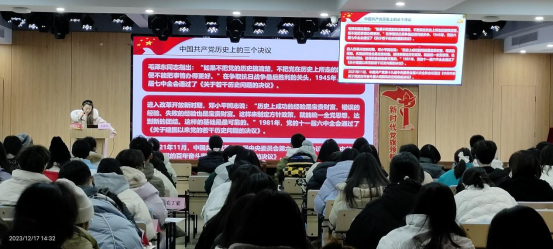 培训第三讲由党课教师范雯宇讲授《中国共产党的伟大使命和光辉历程》党课。范老师首先带领同学们回顾了中国共产党的百年光辉历程。接着,范老师讲述了中国共产党百年奋斗的历史意义和历史经验。她指出,一百年来党领导人民进行伟大奋斗,在进取中突破,从总结中提高,积累了宝贵的历史经验。最后,范老师阐释了新时代新征程中国共产党的使命任务,即团结带领全国各族人民全面建成社会主义现代化强国,实现第二个百年奋斗目标,以中国式现代化全面推进中华民族伟大复兴。