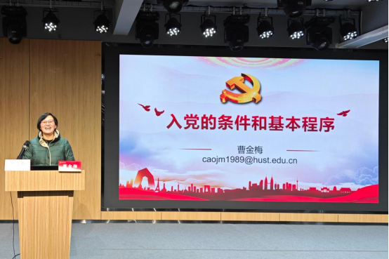 培训班第一讲由党课教师曹金梅讲授《入党的条件和基本程序》党课,她从树立正确的入党动机、共产党员的基本条件,党员的指导思想和党员的基本程序四个方面进行了细致介绍。她指导大家不断端正自己的入党动机,坚定理想信念。